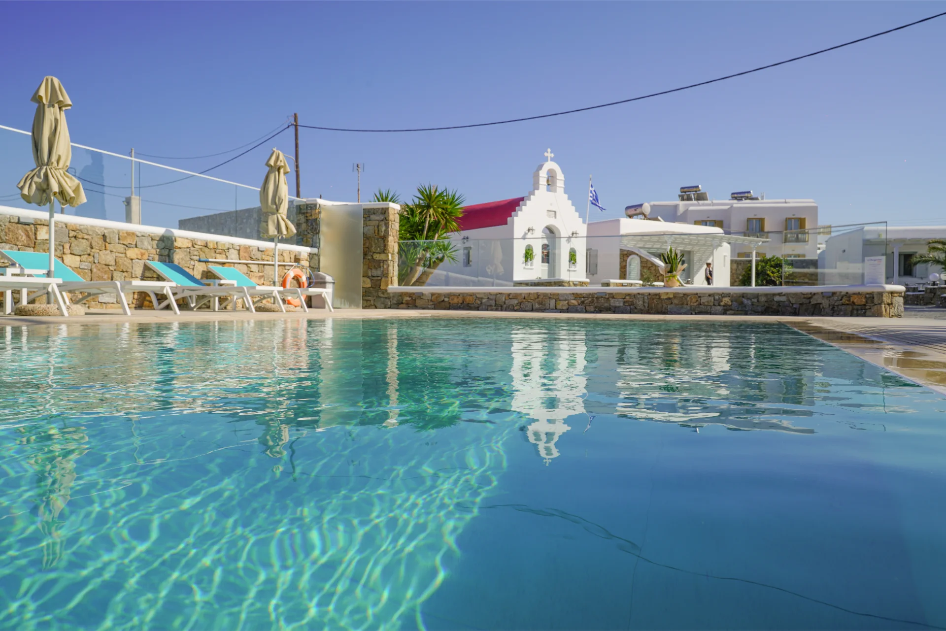 Unwind by our refreshing poolside oasis, complete with complimentary sunbeds and umbrellas for your comfort. Indulge in refreshing drinks and delectable snacks from our pool bar, including mouthwatering options like pizza and club sandwiches. Whether you seek relaxation or adventure, Diogenis Village is your perfect Mykonos retreat.